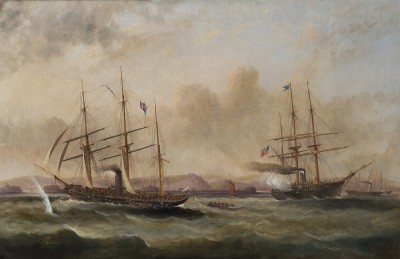 CCS Alabama with battle ensign flying from the spanker gaff before engaging USS Kearsage off Cherbourg